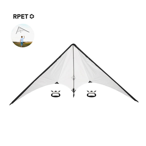 Cerf-volant au design Delta en polyester résistant RPET Ripstop 210T. Avec une structure en fibre de verre qui offre stabilité et facilité d’assemblage. Comprend 2 poignées en plastique avec filetage pour une manipulation polyvalente et un contrôle précis pendant le vol. Comprend une mallette de transport pratique en RPET avec poignée, parfaite pour un transport confortable n’importe où. Le matériau RPET est fabriqué à partir de plastique recyclé, afin de promouvoir la réutilisation des déchets plastiques et d’aider à la durabilité de la planète. - dim. :  - poids : 240g