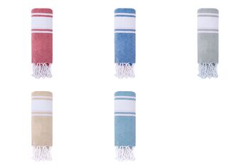 Sac à dos paréo 180x90cm en coton recyclé durable de 170g/m2 en différentes couleurs. Avec un pliage spécial qui le transforme en un sac à dos en corde pour un transport confortable. Avec logo en coton recyclé sur l’étiquette extérieure. Présenté dans un sac individuel. - dim. : - poids : 380g