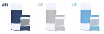 Serviette avec poche et housse étanches. Fabriqué en polyester doux de 200 g/m2, il comprend une poche triangulaire étanche pratique dans le coin, avec une fermeture à glissière idéale pour protéger vos effets personnels. Son design rayé est complété par une housse en maille et une fermeture à glissière. - dim. : - poids : 300g