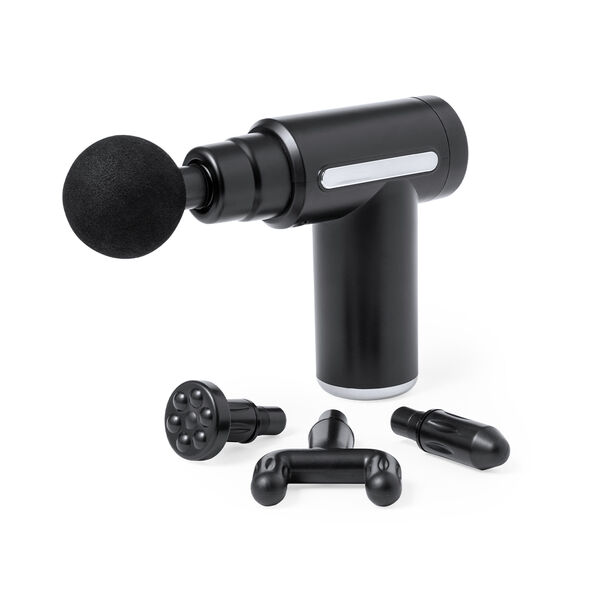 Masseur électrique. Il aide à détendre les muscles, à soulager les effets de l’entraînement, à relâcher les tensions et à revitaliser le corps. Avec deux positions d’intensité et 4 têtes à utiliser dans différentes zones du corps. Batterie rechargeable longue durée de 1200 mAh - Câble de charge USB inclus-. Mode d’emploi disponible en espagnol et en anglais. - dim. :  - poids : 660g