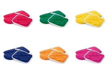 Set de cuisine avec manique et mitaine en matériau TC -combiné coton et polyester-. Dans une gamme variée de couleurs vives avec intérieur blanc. Une face lisse spécialement conçue pour l’impression et la suspension de ruban adhésif. - dim. :  - poids : 85g