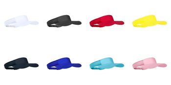 Visière en polyester aux couleurs vives. Fermeture velcro réglable et côtés rembourrés avec panneaux en filet anti-transpiration. - dim. : - poids : 42g