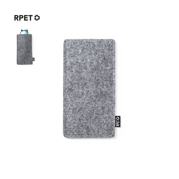 Étui à lunettes de soleil en feutre RPET résistant et doux. Finition cousue avec badge RPET sur l’étiquette extérieure. Le feutre RPET est le résultat de la combinaison du processus de recyclage des matières plastiques et de la technique millénaire de fabrication du feutre, ce qui donne un matériau éco-tendance qui, en plus d’être d’origine recyclée, devient également recyclable. - dim. : 9.5 x  x 18 cm - poids : 15g